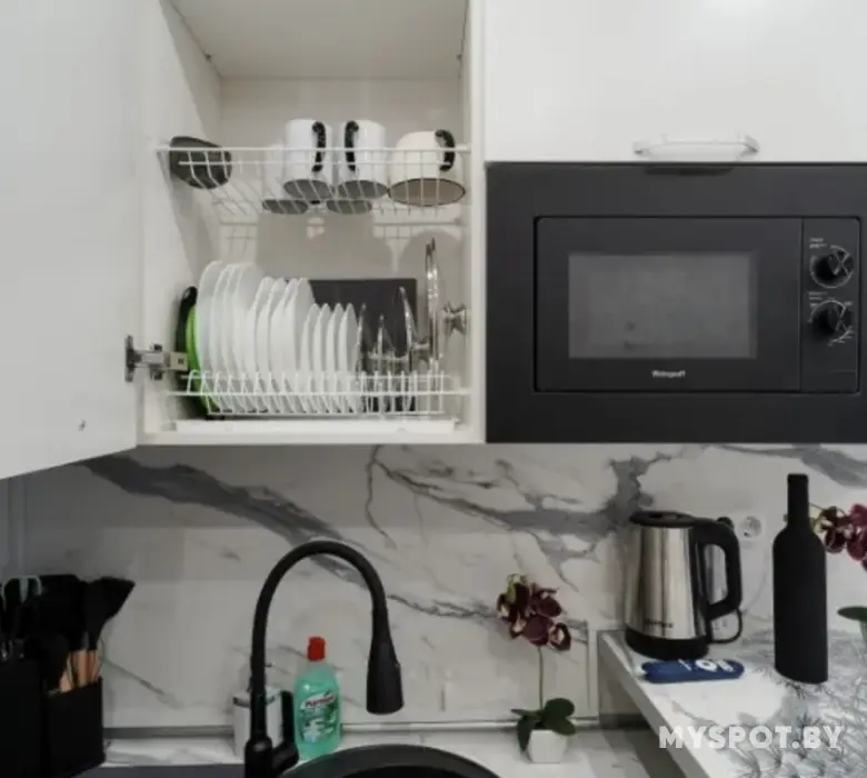 Телевизор со Smart TV, КОНДИЦИОНЕР, высокоскоростной бесплатный Wi-Fi, Фен, пылесос, встроенная СВЧ, ТОСТЕР, стиральная машина, душевая кабина, эл. полотенцесушитель, утюг, эл. чайник, варочная панель, встроенный холодильник, набор кухонной посуды + бокалы, фужеры, стаканы. Гель и ополаскиватель для стирки, средства гигиены. Халаты + тапочки (по запросу, доп. оплата).