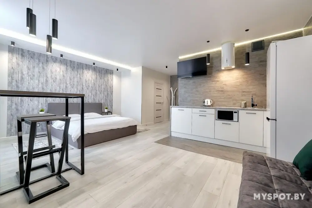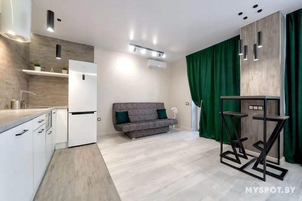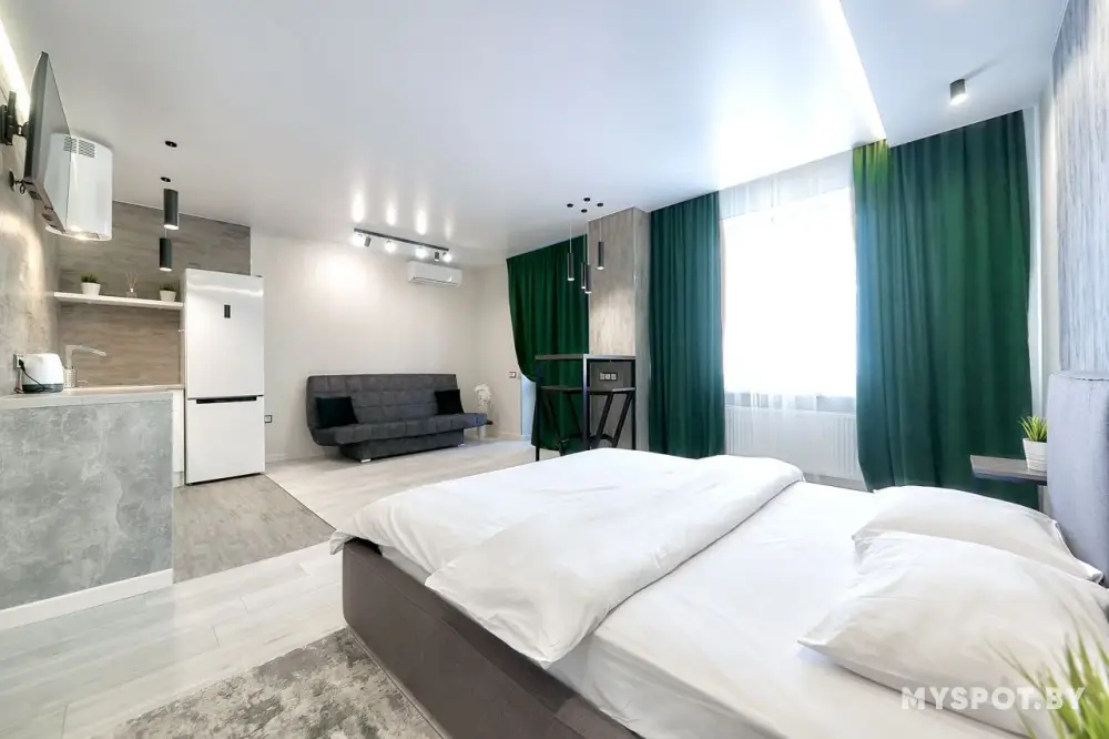 Сдается видовая большая студия на 17 этаже. Красивый вид из окна. До метро 1 мин пешком. Отличная квартира в Минске. В квартире имеется всё для комфортного проживания : SMART TV, WI-FI, холодильник, чайник, СВЧ, утюг, стиральная машина и многое другое. Цена зависит от дня недели, количества человек и спроса. Цену всегда уточняйте. Сдаем как на сутки так и на часы! Для командировочных отчетные документы.