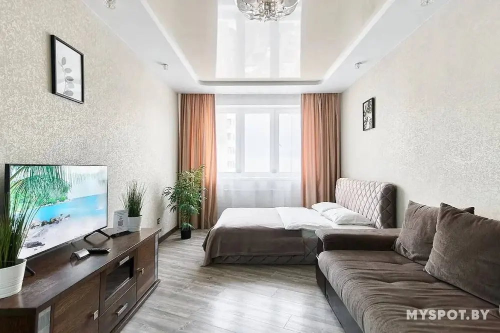 Сдается видовая большая студия на 17 этаже. Красивый вид из окна. До метро 1 мин пешком. Отличная квартира в Минске. В квартире имеется всё для комфортного проживания : SMART TV, WI-FI, холодильник, чайник, СВЧ, утюг, стиральная машина и многое другое. Цена зависит от дня недели, количества человек и спроса. Цену всегда уточняйте. Сдаем как на сутки так и на часы! Для командировочных отчетные документы.
